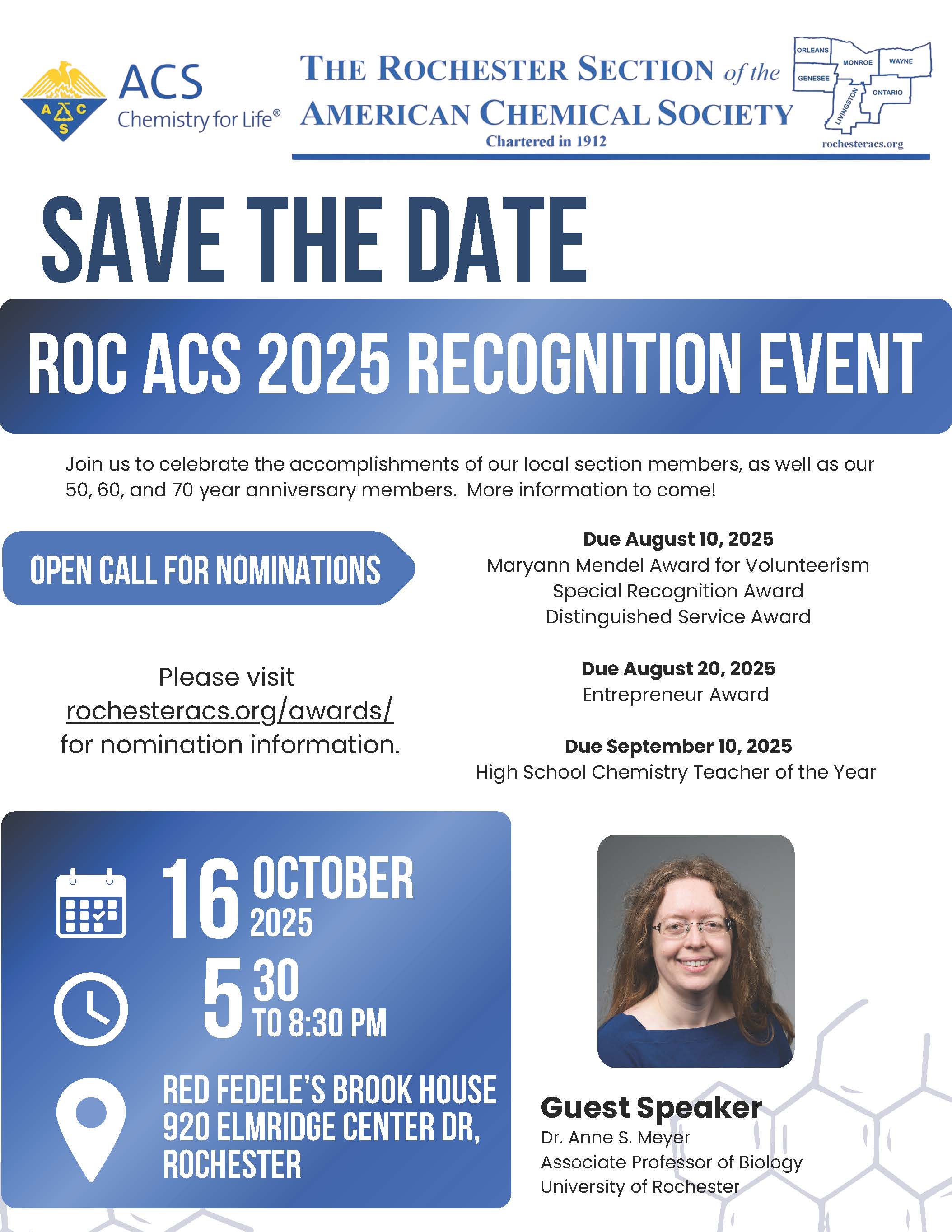 | Recognition Night | October 16 | U of F Goergen Hall, room 101 7:30 PM |